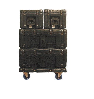 Shown: 2 Noho C and 2Berlin 15/H loudspeakers deploying from ‘case mode’ on a dolly to ‘speaker mode’. Nohos also converted to ‘monitor mode’.